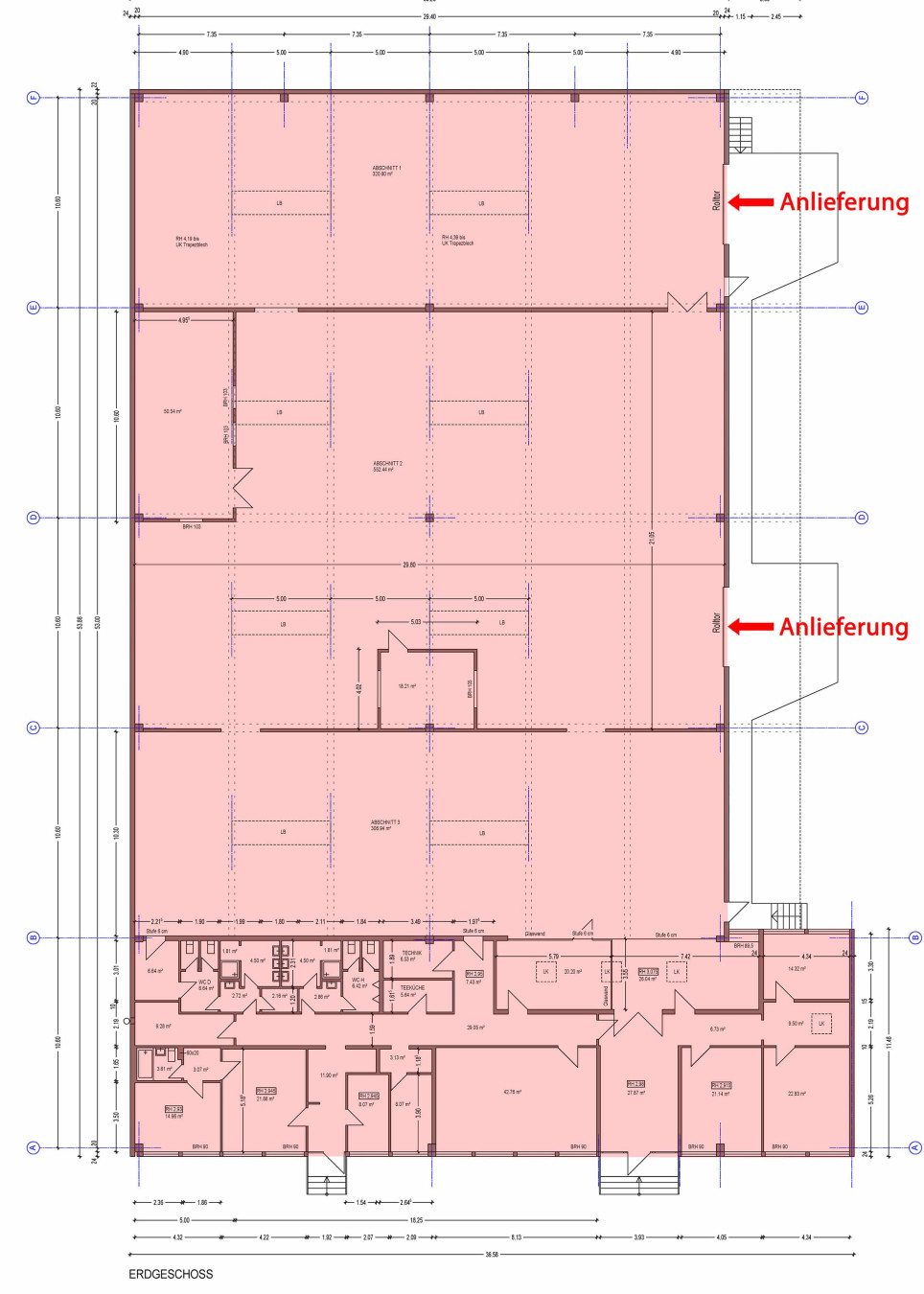 - überdachte Rampenandienung (Traglast 600 kg) über 2 elektrische Rolltore, Maße: ca. H 3,14 m x B 4,00 m